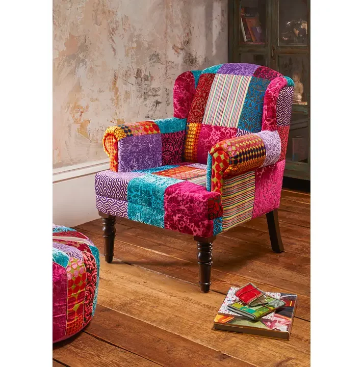 Multi Patchwork Velvet Armchair